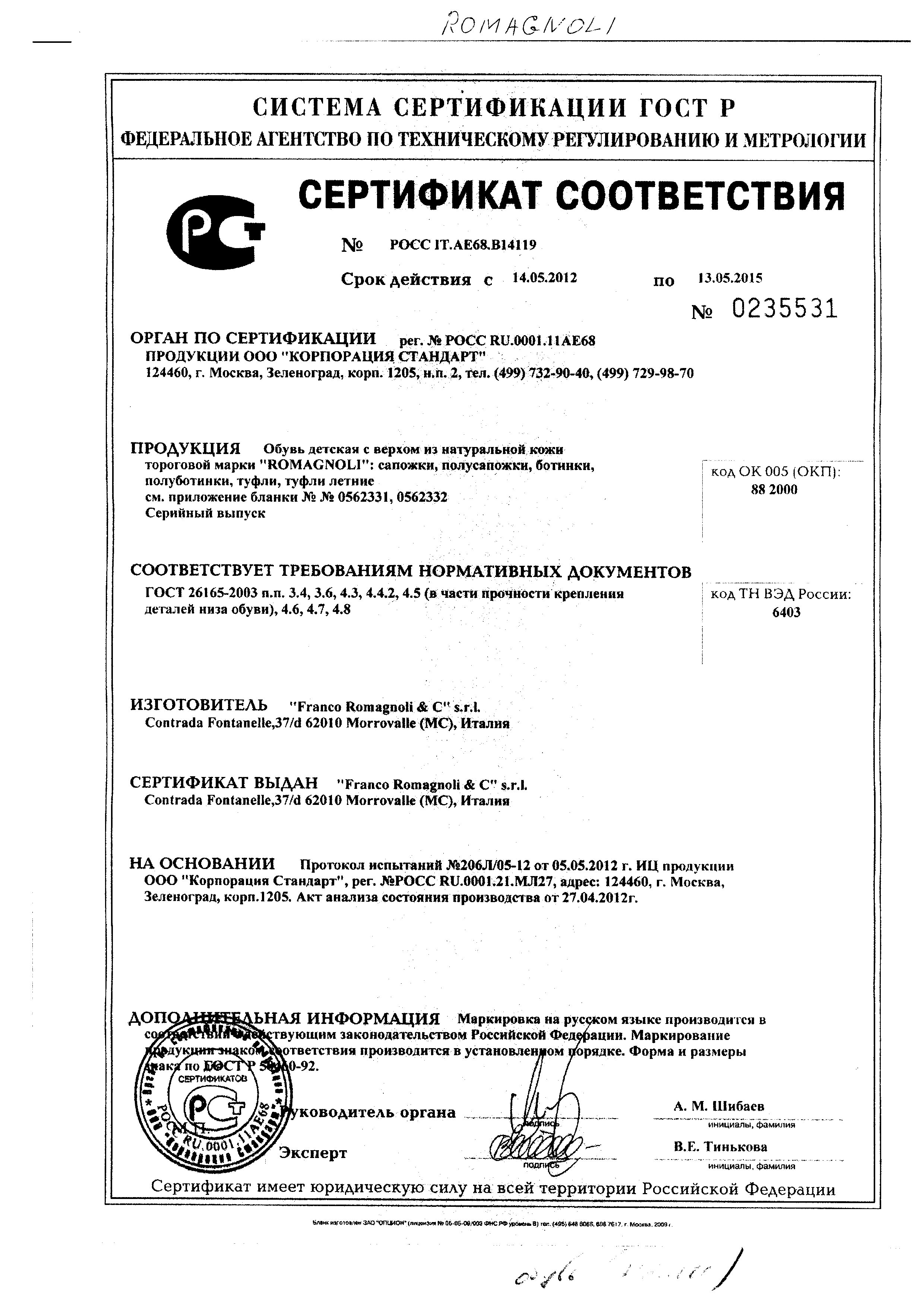 Сертификаты: