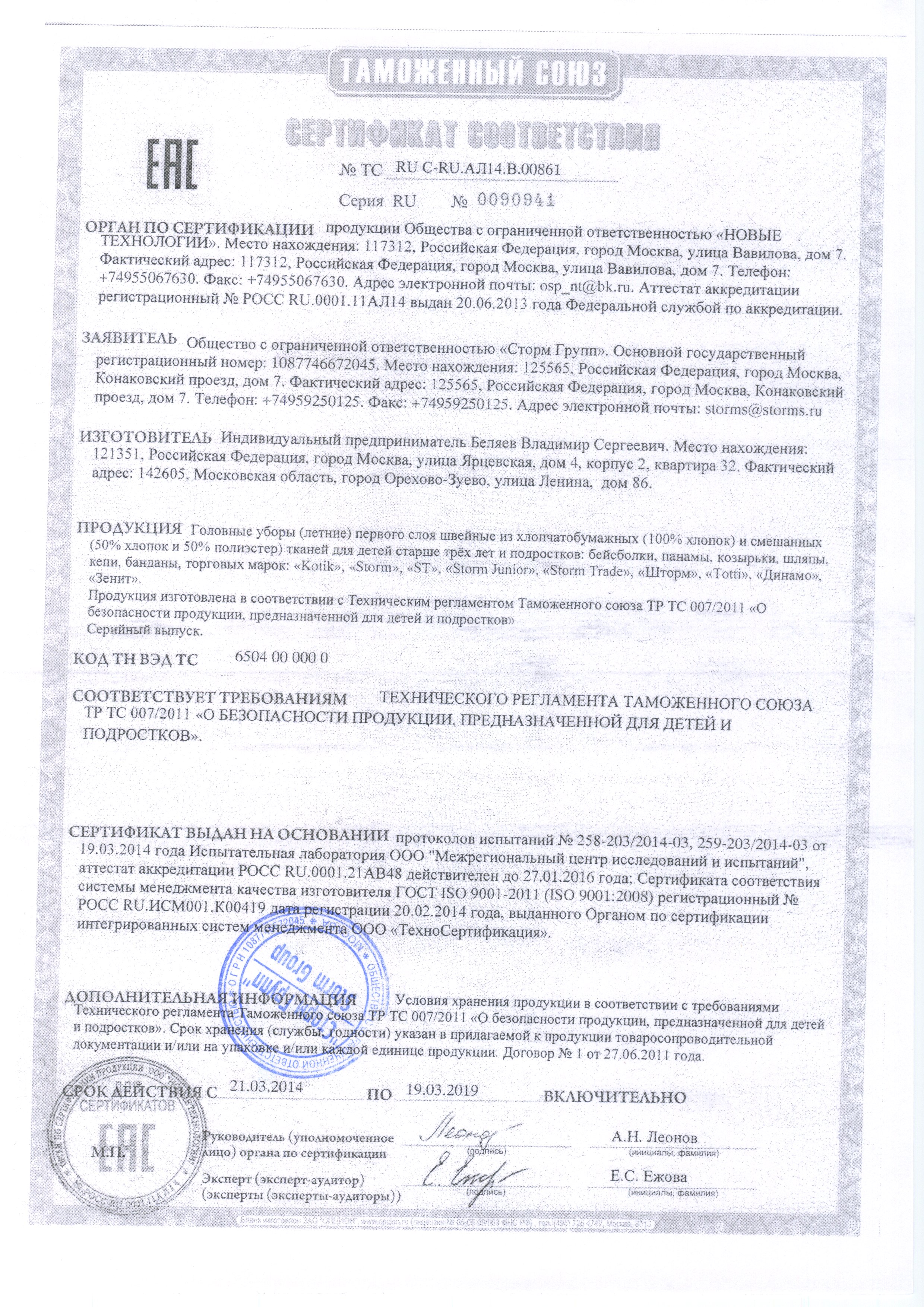 Сертификаты: