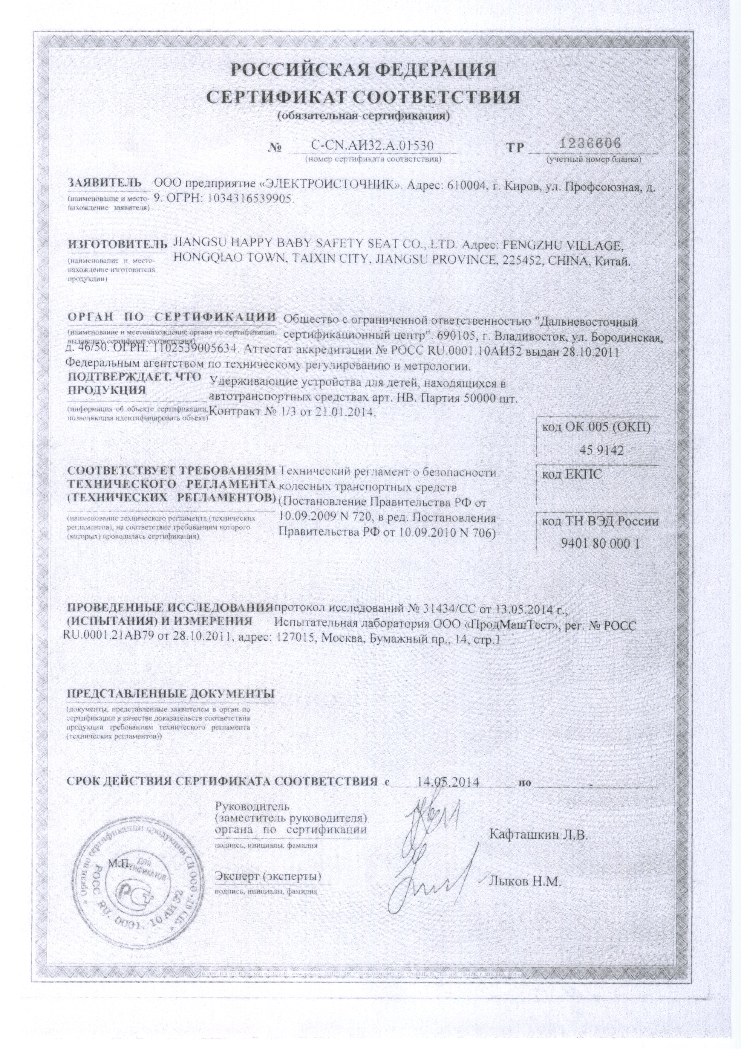 Сертификаты: 1